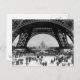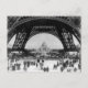 Vintages Foto des Eiffelturms in Paris aus dem frühen 20. Jahrhundert. Der Ausblick ist auf den Turmboden nah. Schwarz-Weiß-Foto.