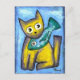 Niedliches kleines Kätzchen, das eng an seinen Fischfreund hält.