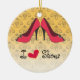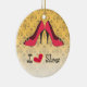 Diese Keramik "I Liebe Shoes" Weihnachtsschmuck hat einen Vintagen Look mit dem Damast Hintergrund und den roten Stilettos. Es ist perfekt für die Liebe, Schuhe zu kaufen.