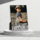 Moderne Foto-Plakette mit Single-Foto eines Kindes und ''I Liebe you Oncle'' in moderner Schrift auf grauem Hintergrund. Schönes Geschenk für Väter.