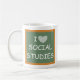 Dieses Produkt zeigt ein Bild einer Tafel mit "I [Herz] SOCIAL STUDIES" in weißem Schriftart. Dieses Produkt ist ein großartiges Geschenk für Soziallehrer oder Enthusiasten.