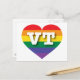 Auf dieser Postkarte befindet sich ein Regenbogenherz, überlagert von den fett-weißen Hauptstädte VT, der offiziellen Abkürzung für Vermont, dem grünen Staat. Zeigen Sie Ihre wahren Farben, unterstützen Sie die Gleichheit der Ehen und feiern Sie Gay Pride.