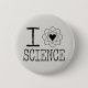 I Liebe-Wissenschafts-Button mit Herzen und Atom.