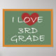 This poster displays the text "I Love 3rd Grade" on a chalkboard background. This is a great item for third grade teachers to hang in their classrooms.
