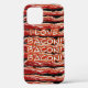 Tout va mieux avec BACON ! Même votre étui téléphonique. Les bandes de bacon sont l'arrière - plan du texte, "I Love Bacon! Bacon ! Bacon !".