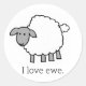 Cet autocollant présente un mouton de dessin animé vraiment mignon avec le texte "I love ewe" inclus. Fait un cadeau drôle et fantaisiste pour l'unique amour "ewe"!