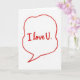 This card shows a red speech bubble in the middle of a plain white background, drawn with slightly rough, crayon-like lines. Inside the bubble, the words “I love U” are written in red and look like quick, hand-drawn lettering. The bubble outline isn’t perfectly smooth, which makes it feel more like a real note someone dashed off in the moment. The bright red color stands out strongly against the white space and keeps the focus on the message. There aren’t any extra objects or characters, so the whole design feels direct and easy to read. The message sits centered inside the bubble, giving it a simple, honest look that fits romance or close friendship. It’s the kind of card that says a lot with just a few words 💘❤️. Hope it helps you share a little extra love this Valentine’s Day.