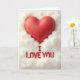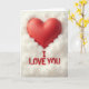 This greeting card shows a big, plump red heart near the top center, with a smooth matte look that feels calm and loving. The heart sits in a soft white, cloud-like surround that wraps around it like a gentle hug. The red against the white is simple and striking, making the main message easy to feel at a glance. Below the heart, the words “I LOVE YOU” appear in red letters that look slightly raised, giving them a subtle 3D effect. The lettering is in all caps and placed neatly in the lower center, so your eyes move from the heart down to the message. The soft lighting and mild shadows make everything look cozy and comforting, like a warm moment held still. It’s a meaningful card to give because it says what you mean without needing anything extra, whether for a partner or someone you care about 🥰❤️.