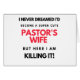 I Never Dreamed I'd Become A Super Cute Pastor's Wife But Here I Am Killing It design. This is a short funny quota which is great as Pastor's Wife Toxits. Donc suitable as an appreciation venft idea for Pastor's Wife.