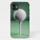 Ich Phone Gehäuse mit einem weißen Golfball auf einem weißen T-Set auf einem grünen Hintergrund.