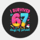 I Survived 67 Days Of School Funny Six Seven Teach Runder Aufkleber