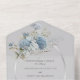 Diese All-in-One-Hochzeitseinladung bietet die Kombination aus dem weichen grauen Hintergrund und den auffallenden eisblauen böhmischen Blume-Bouquets und schafft ein harmonisches und raffiniertes Aussehen, das perfekt die Schönheit Ihrer Liebe widerspiegelt. Die All-in-One Hochzeitseinladungen sind schön und praktisch, indem sie die Hochzeitseinladung mit einer leicht zu entfernenden perforierten UAWG-Postkarte kombinieren. Sie sind auch schnell und einfach für den Versand vorbereitet. Einfach auf die Einladung richten, die Rückenklappe und das Siegel mit den beiliegenden Klarsichtstickern falten. Sobald Ihre Gäste die voradressierte Einladung erhalten, reißen sie einfach die perforierte RSVP-Karte ab und lassen sie in der E-Mail ablegen.