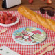Ein paar lustige Teller für Ihre Kinder Weihnachts-Party mit der Illustration einer niedlichen Pinguin Eis Skaten . © ArianeC Illustrationen