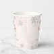 Beautiful ice-skating birthday paper cups featuring soft pink tones, elegant silver glitter snowflakes, and watercolor ice skates. Perfect for winter birthdays and girls skating parties.