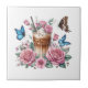 Iced Coffee & Butterfly Floral Ceramic Tile Fliese