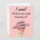 Diese neue Zuhause-Postkarte zeigt ein Vintage-Bild einer gut gekleideten Frau in einem rosa Hut auf rosa Hintergrund. Der Text lautet: "Ich bin umgezogen! Gerne senden wir Ihnen ein schönes Hauswärmespaket zu". Die Hintergrundfarbe und der gesamte Text können auf Wunsch angepasst werden.