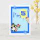 5. Geburtstagskarte mit lustigem Clown, Pinguin und Eis und Ballons auf blauem Hintergrund. Personalisieren Sie dieses Design einfach, indem Sie den Text hinzufügen oder ändern.