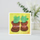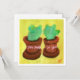 Zwei Kakteen in Töpfen mit gelbem Hintergrund und Text.