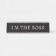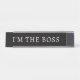 Klassisch Schwarz-Weiß Schreibtischschild "I'm the Boss". Kann vollständig mit Ihrem eigenen Text und Ihren eigenen Farben personalisiert werden.