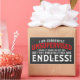 Dieses Design enthält ein kühnes, humorvolles Zitat mit der Aussage: "Ich bin derzeit unbeaufsichtigt, ich weiß, es macht mich auch verrückt. Aber die Möglichkeiten sind endlos!" in einem Mix aus markanten roten und schwarzen Schriftart, perfekt, um eine sorglose und freche Einstellung auszudrücken.