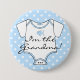 Dieser entzückende hintere Knopf des Abzeichens oder des Buttons erklärt allen Ihren Babyduschengästen, ", das ich die Großmutter bin". Blauer und weißer Polkapunkthintergrund mit einer blaues Baby onsie Pullover-T - Shirtausstattung thingy und ein niedlicher blauer Fisch. Fertigen Sie dieses Abzeichen für alle Familienverwandten besonders an! Vervollkommnen Sie für die Schwester, Tante, groß - Großmutter, Gotmutter oder MAMA! Machen Sie ein für jeder! Dieses Bild ist auf Baby-Duschen-Einladungen, Adressen-Etiketten, Aufkleber verfügbar, danke Karten, Gastbuch und Taschentaschen! Besichtigen Sie bitte meinen Speicher "die Hungarican Prinzessin" bei www.zazzle.com/hungaricanprincess* und schauen Sie in meiner "oh Baby" Kategorienabteilung.