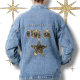 Ich bin ein Star Gold Buchstaben Blue Denim Jacket. Goldbriefe. Keine Sequenzen, die im Design verwendet werden.