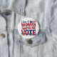 Ich bin eine Frau, die mir den Wahlknopf anschaut Button
