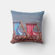 Es handelt sich um ein schönes Kissen am Meer, das mit zwei Liegestühlen auf einem Kieselstrand, einem blau-weiß gestreiften und einem rot-weißen Streifen, verziert ist. Das Gegenteil ist ein schönes Blau am Meer, mit den Worten: "Ich mag es, am Meer zu sein" Es ist ein Vorlagenfeld, sodass Sie diese Wörter ändern können, wenn Sie möchten.