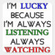 Ich habe Glück, weil ich immer zuhöre, immer zuschaue. Originelle positive Denkbotschaft.