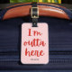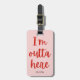 Ich bin hier draußen. Gepäckanhänger mit einem lustigen minimalistischen Rot auf rosa Text-basiertem Design.