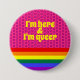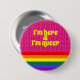 Ich bin hier und ich bin Que LGBT-Regenbogenflagge Button