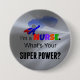 Nurse Spaß (Stahlgrau mit Spezialeffekten). "Ich bin Krankenschwester. Was ist dein Super-Power?" button.