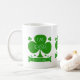 Große Kleeblätter mit "mir bin, küsse mich" auf dieser coolen Tasse irisch.