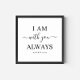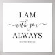 Dieses moderne Design zeigt den Bibelverse "Ich bin immer bei dir". Matthew 28:20 im eleganten schwarzen Serif und Script-Schriftart, auf einem weißen Hintergrund. Text ist anpassbar.