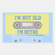Aufkleber mit dem Slogan "Ich bin nicht alt, ich bin Retro" auf blauem und grünem Kassettenband.