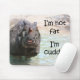 Rhinozeros mit offenem Sprichwort im Mund "Ich bin nicht dick, ich bin süß" Foto Mousepad