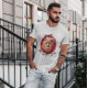 Das Material ist eigentlich gute Qualität, der Stoff ist nur etwas verzogen so dass der Drück leicht schief aussieht. Der Druck ist gute Qualität, habe das T-Shirt schon einige male gewaschen.