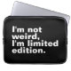 Ich bin nicht seltsam, ich bin limitierte Auflage Laptopschutzhülle