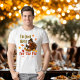 Dieser Erntedank Tee ist mit einem Cartoon Truthahn, Gabel in der Hand und Augen auf Dessert verschlossen. Umgeben von Herbstblättern und kühnen Typografien ist es die perfekte Mischung aus festlichem und lustigem Leben.
