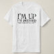 Ich bin oben, ich bin verkleidet Was will du noch? Hat nicht jeder jemanden in seinem Leben, der zu diesem Slogan passt? Ich kann mir ein paar vorstellen, die stolz auf die wahre Tatsache sind, dass Aufstehen und Anziehen vielleicht einfach ein Wunder sein kann. Erhältlich in weißen Buchstaben auch für dunkle Farben.