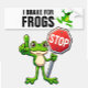 Funny White Autoaufkleber mit "I BRAKE FOR FROGS" in schwarzem Text auf zwei Zeilen geschrieben. Mit einem Bild ein bezaubernder Cartoon Frosch.