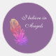 Ich glaube an Engel , Feder zeichnend , lila Aufkleber. Einfach auf Ihren Text und Hintergrund zugeschnitten.
