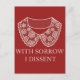 Der Protest gegen den Umsturz von Roe gegen Wade, einer Postkarte mit RBG-Stilkragen und einer Paraphrase der abweichenden Meinung der drei Richter.