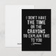 Ich habe nicht die Zeit oder die Buntstifte, um dir das zu erklären Lustig Sarkastisch