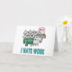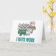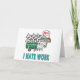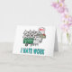 Ich Hate Work zeigt die Schafe, die glücklich zu ihrer Arbeit marschieren, während unser arbeitshafter Anti-Held in die andere Richtung geht. Die Worte "I Hate Work" unten machen den Punkt deutlich.
