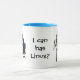 Ein Pinguin, der einen Computer, das Recht nachher zu Mittag isst mit dem Text "betreibt, das ich kann, hat Linux?". Der Text ist kundengerecht, also können Sie Ihre Selbst addieren. Groß für irgendeinen Linux-Liebhaber.