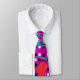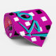 Miami Vize-Blauer Text, heiß rotes Herz, schwarz-weiße grafische Quadrate - alles auf neonfarbenem, lila rosa Hintergrund. (Und nein, die Ironie dieses Designs auf breiter Krawatte geht mir nicht verloren.)