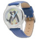 Kinderuhr aus Edelstahl mit blauem Lederarmband