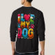 Im Design des T - Shirt wird der Satz "I Liebe My Dog" in fett gedruckter, spielerischer Schrift dargestellt, wobei das Wort "Liebe" durch ein Herzsymbol ersetzt wird. Unter oder um den Text herum gibt es niedliche, mit Hunden verwandte Illustrationen, wie Pfotenabdrücke, Knochen oder eine Silhouette eines Hundes. Das Design verleiht dem Hundeliebhaber ein warmes, unterhaltsames Ambiente, damit er seine Zuneigung für seine wütenden Begleiter ausdrücken kann. Die Farbpalette ist einfach und fröhlich, mit kontrastfarbenen Farben, um den Design-Pop auf verschiedenen T - Shirt-Hintergründen zu machen.