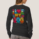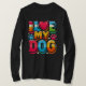 Das Design des T - Shirt enthält den Satz "I Liebe My Dog" in fett gedruckter, spielerischer Typografie. Das Wort "Liebe" wird durch ein großes rotes Herz repräsentiert und verleiht dem Wort einen lebendigen Pop. Um den Text herum sind niedlich, Pfotenabdrücke und kleine Hundeabbildungen wie Knochen und ein Hundehalsband. Das Design ist schlicht, gemütlich und perfekt, um die Zuneigung eines Hundebesitzers in einem lässigen und unterhaltsamen Stil auszudrücken.